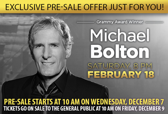 All ticket levels are limited and based on availability. Limit eight (8) tickets per person. Tickets may be purchased online, in person, or by calling the Gift Shop and giving them the password "LOVE". Tickets go on sale to the general public at 10 AM on Friday, December 9, 2022. See Resort Club for complete rules on all gaming promotions. You must be an active Resort Club member in order to participate in our E-Club. If you are not a member of our Resort Club, please go to our Resort Club desk near the main entrance of our casino to sign-up (in order to be a Resort Club and E-Club member, you must be 21 or older, and not on the state of Iowa voluntary self-exclusion listing). Bet with your head not over it. NEED HELP? Call 1-800-BETS-OFF